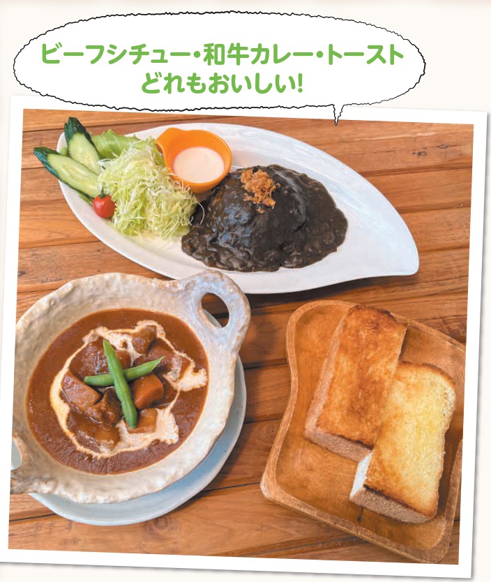メニューは、バターシュガーやツナチェダーチーズ、あんバター、チリピザなどのトースト類、カルボナーラなどのパスタ類、特製和牛カレーやビーフシチューなどで350円〜1300円とリーズナブル。ドリンクはコーヒー、チャイ、ビールなど600円均一だ。