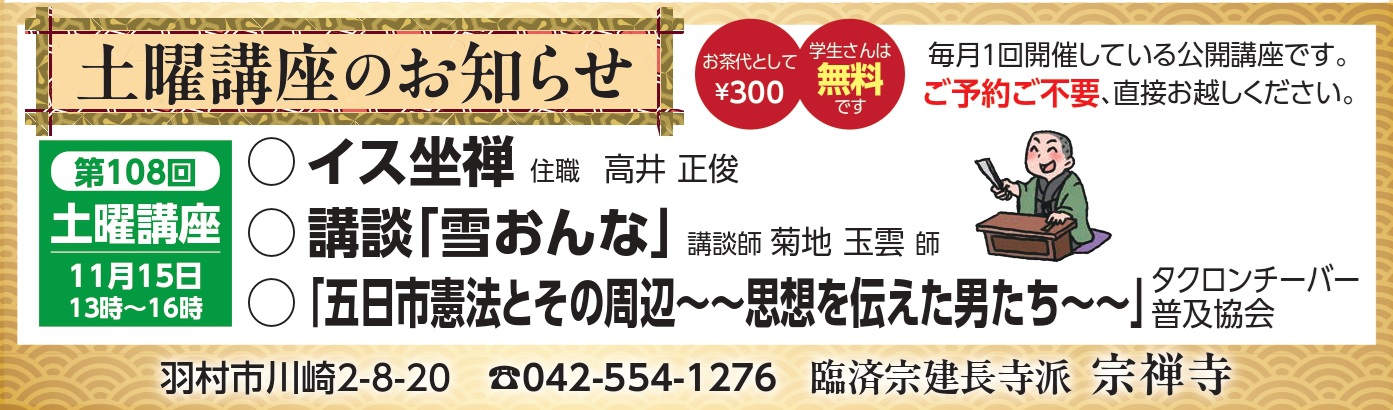 羽村市川崎2-8-20 ☎042-554-1276 臨済宗建長寺派 宗禅寺