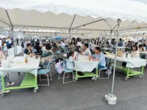 学生が運営する模擬店の他にも、地元青梅の飲食店やギフトショップ、輪島と能登の特産品を販売する輪島朝市などが開催され、大いに盛り上がった。