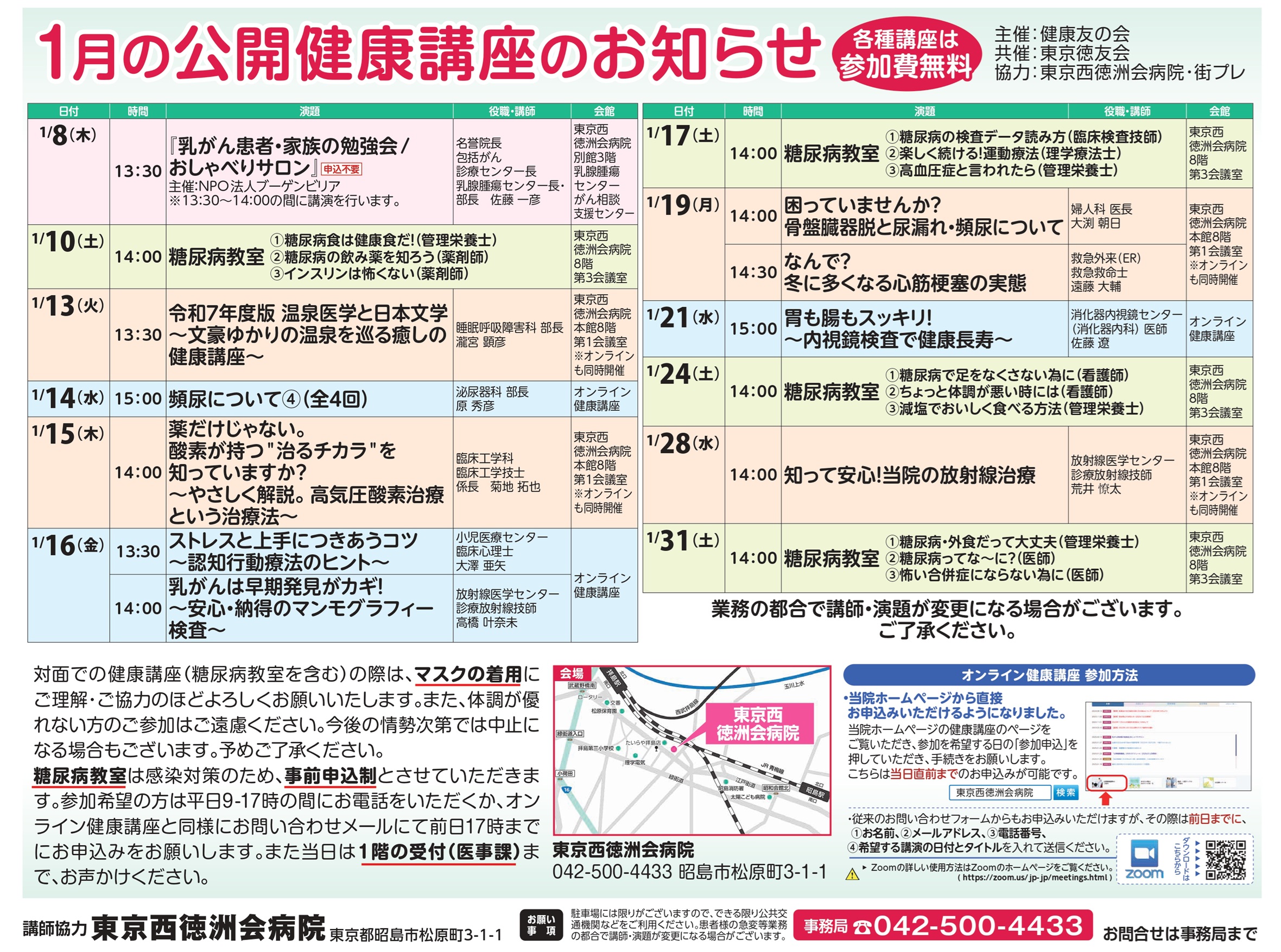 #健康講座 #東京西徳洲会病院 #糖尿病教室 #生活習慣病予防 #オンライン講座 #地域医療 #無料講座
