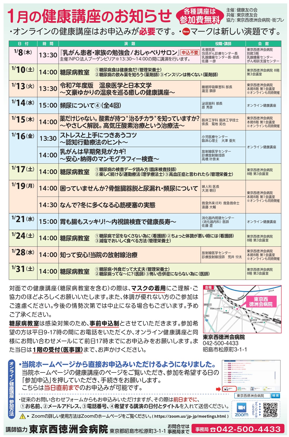 #健康講座 #東京西徳洲会病院 #糖尿病教室 #生活習慣病予防 #オンライン講座 #地域医療 #無料講座