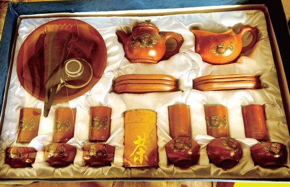 ◆あきる野市伊奈の「楊の泉」ではリサイクルコーナーを始めた。写真は中国の茶器セット(3000円)