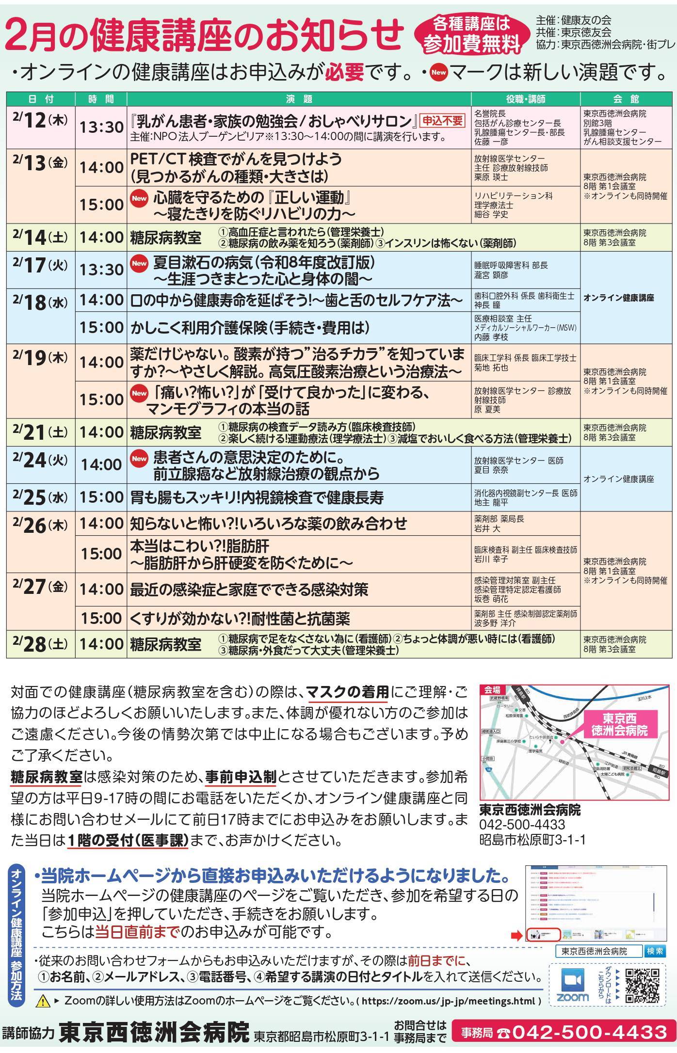 2月の公開健康講座のお知らせ