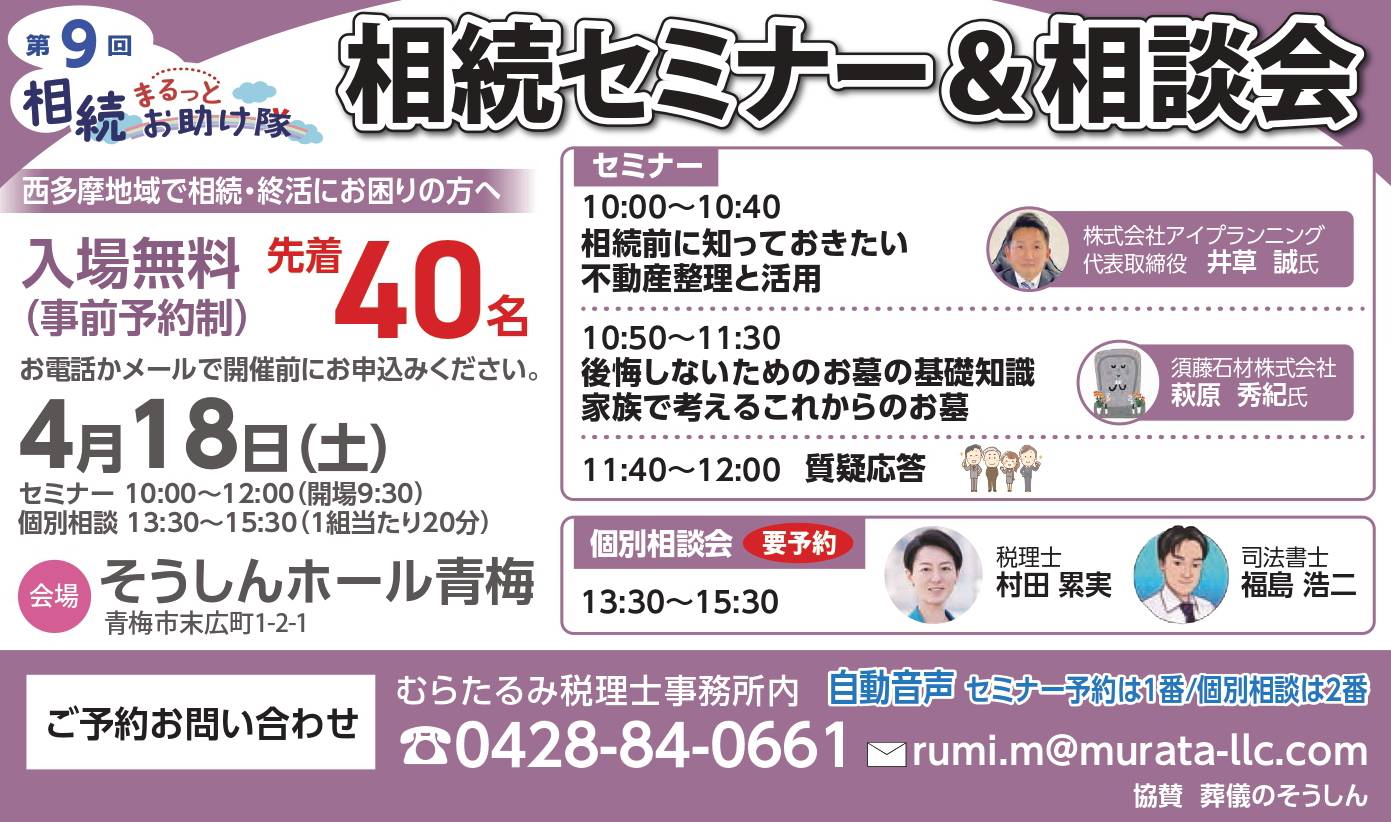 第9回相続まるっとお助け隊 相続セミナー&相談会
