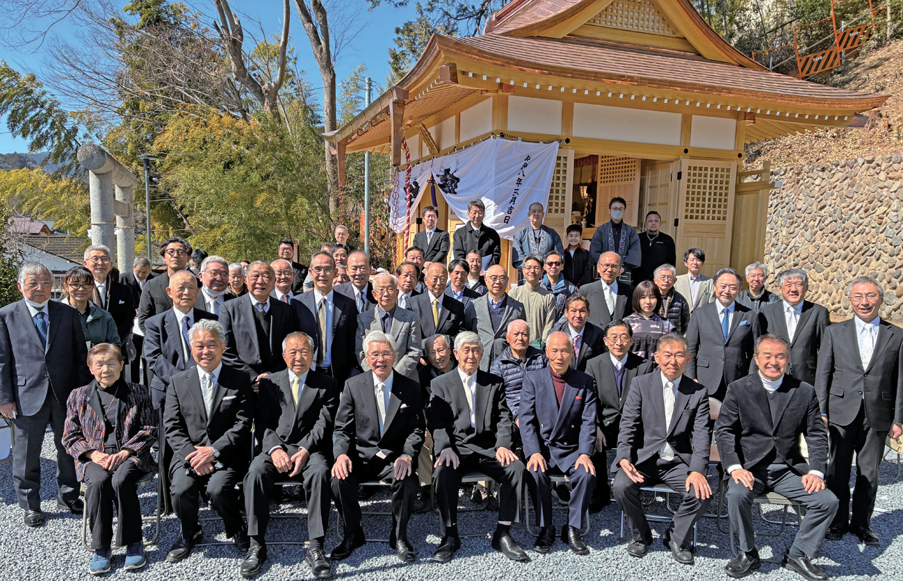 青梅市天ヶ瀬町の鎮守、八坂神社の新社殿が竣工し、3月8日、ご神体を移す遷座式が厳かに行われた。神社・自治会役員と工事関係者ら60人ほどが列席した。同神社の裏山を都市計画道路青梅344号線が通ることから、社殿を南側にずらし、移設・新築した。都市計画道路の整備計画は半世紀以上の長い時間を経たが、2022年に動き始めた。神社役員らと東京都との間で用地買収や物件移転補償などの協議を開始。交渉を重ね、合意に至った。