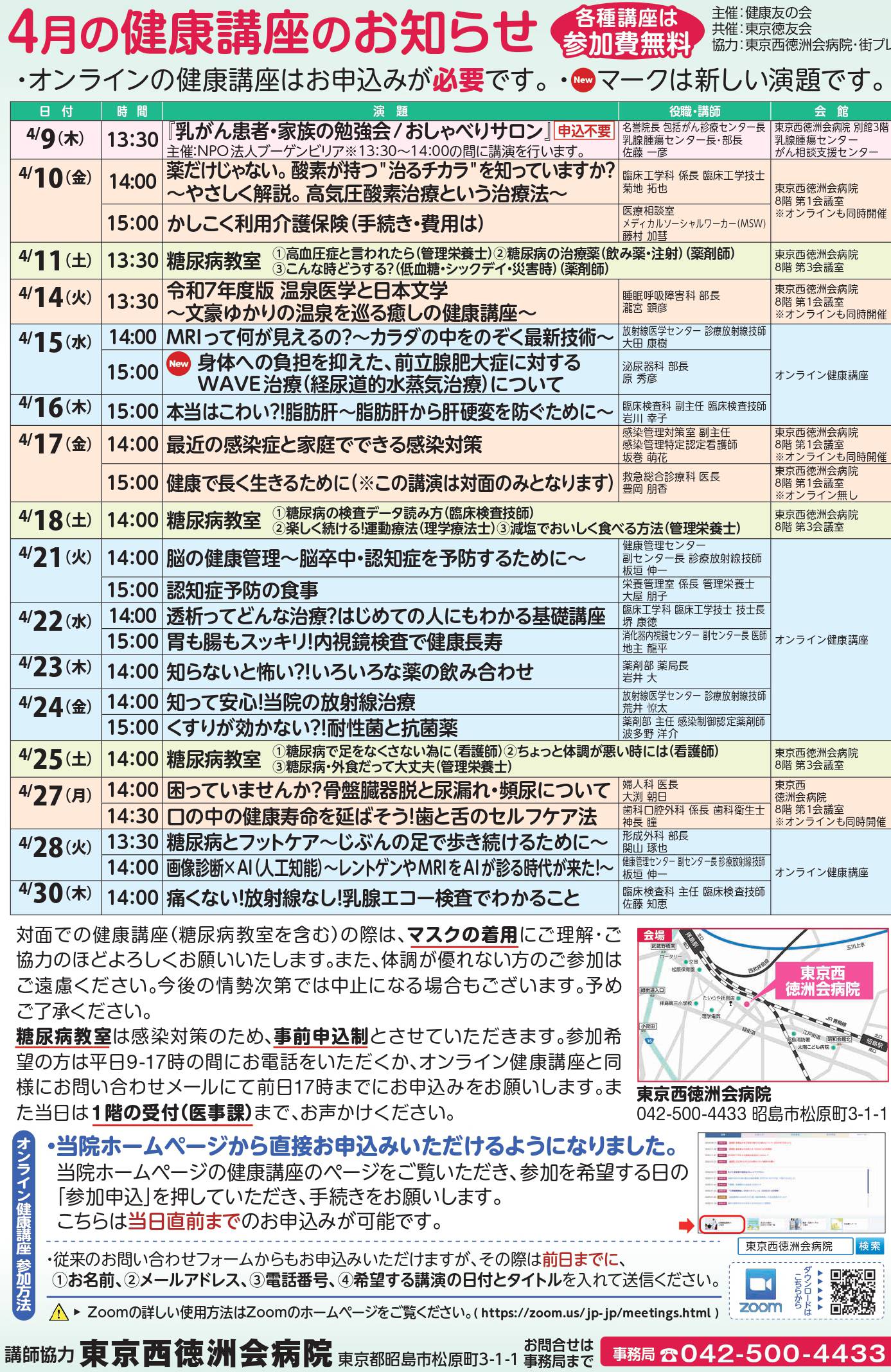 #健康講座 #東京西徳洲会病院 #糖尿病教室 #生活習慣病予防 #オンライン講座 #地域医療 #無料講座