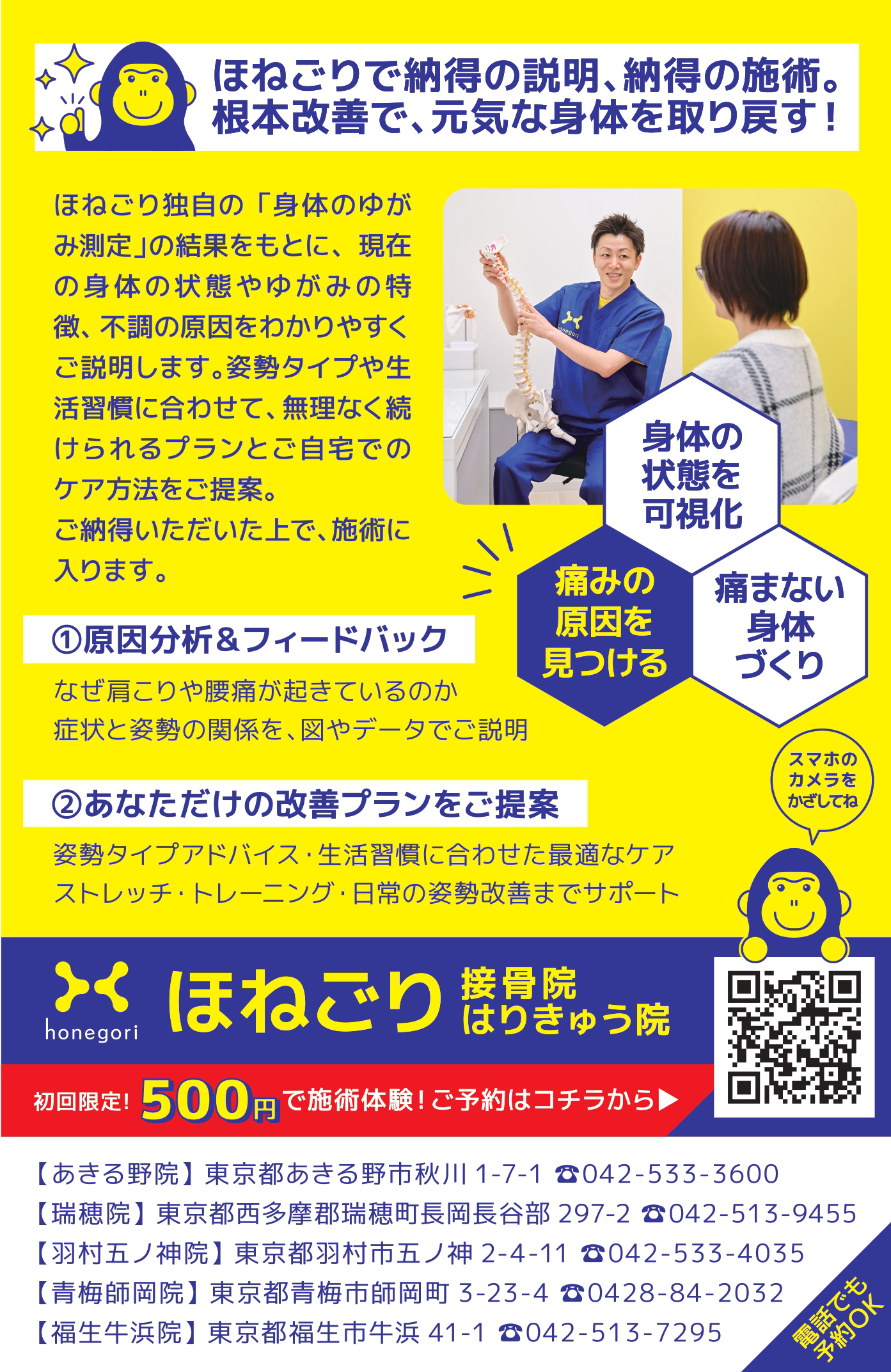 ほねごりで納得の説明、納得の施術。 根本改善で、元気な身体をとり取り戻す!